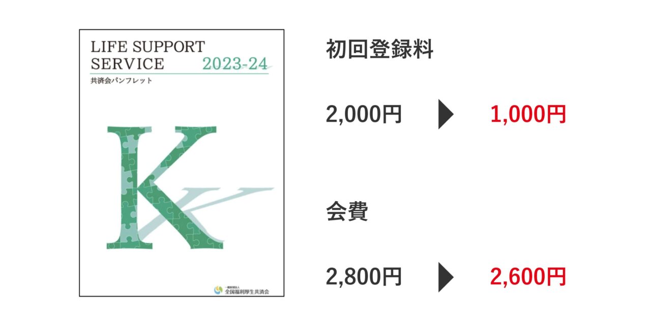 K会員の初回登録料が1,000円、会費が2,600円になる。