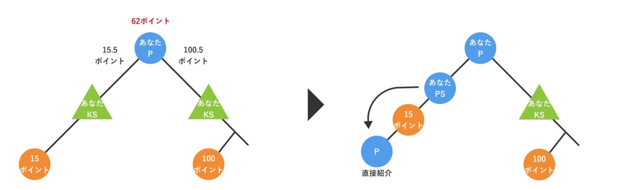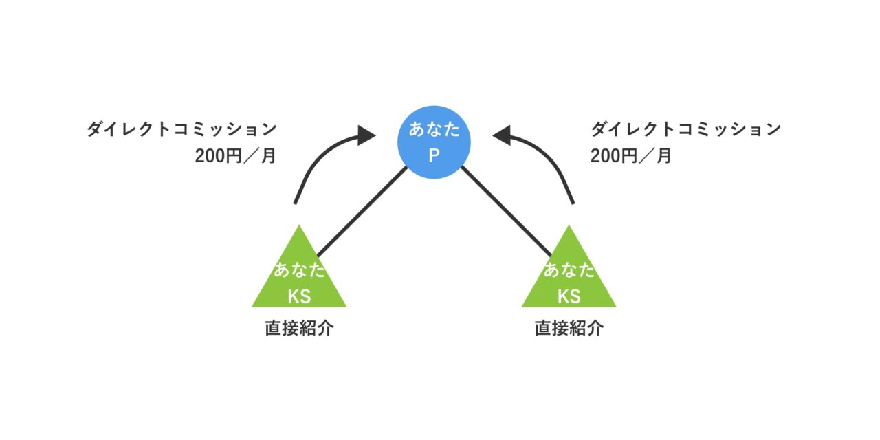 KS会員をP会員の直接紹介とみなすことができるので、ダイレクトコミッションの受領条件を達成できます。