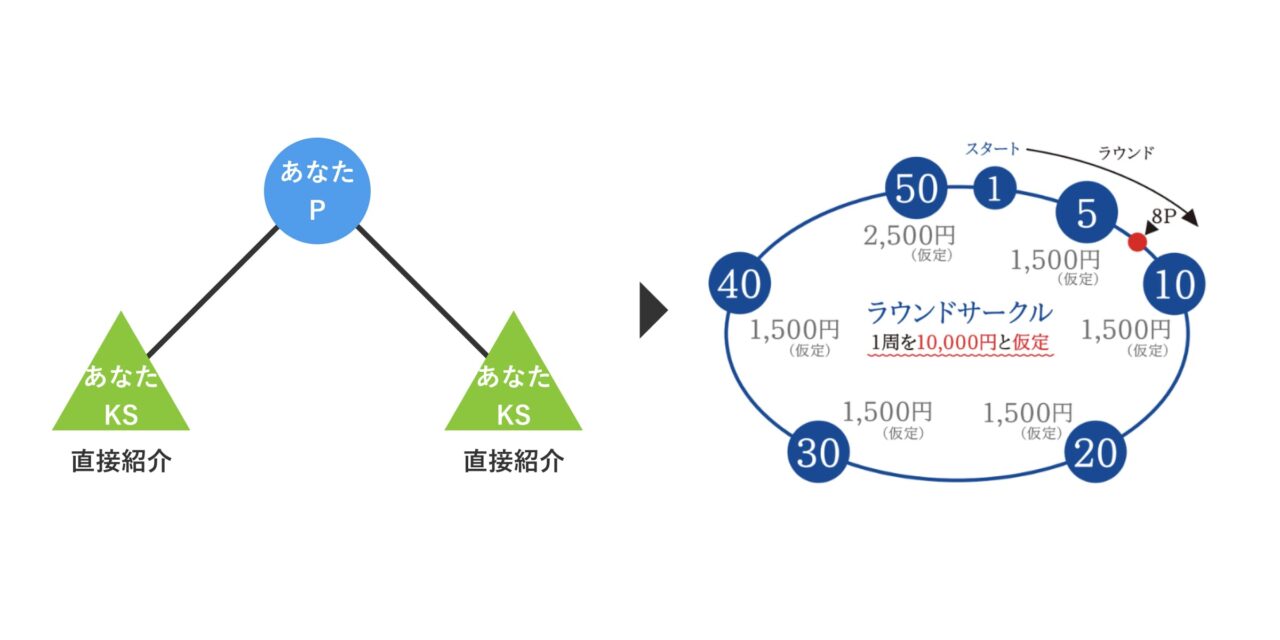KS会員をP会員の直接紹介とみなすことができるので、ラウンドコミッションの受領条件を達成できます。