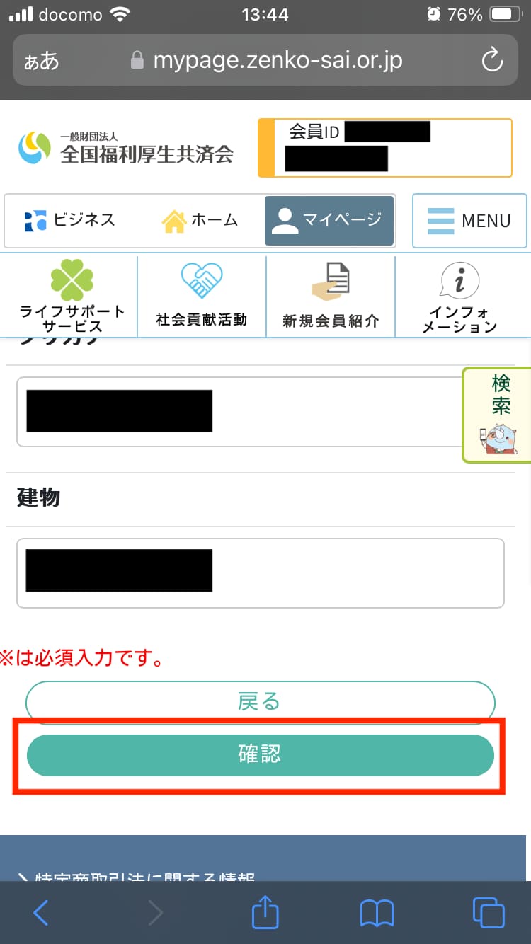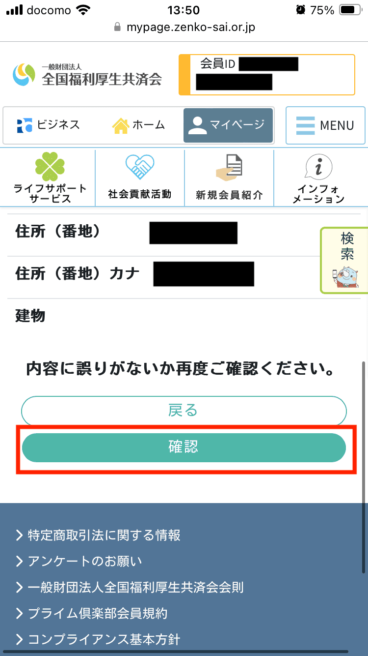 内容に誤りがないか再度確認し、「確認」をタップする。