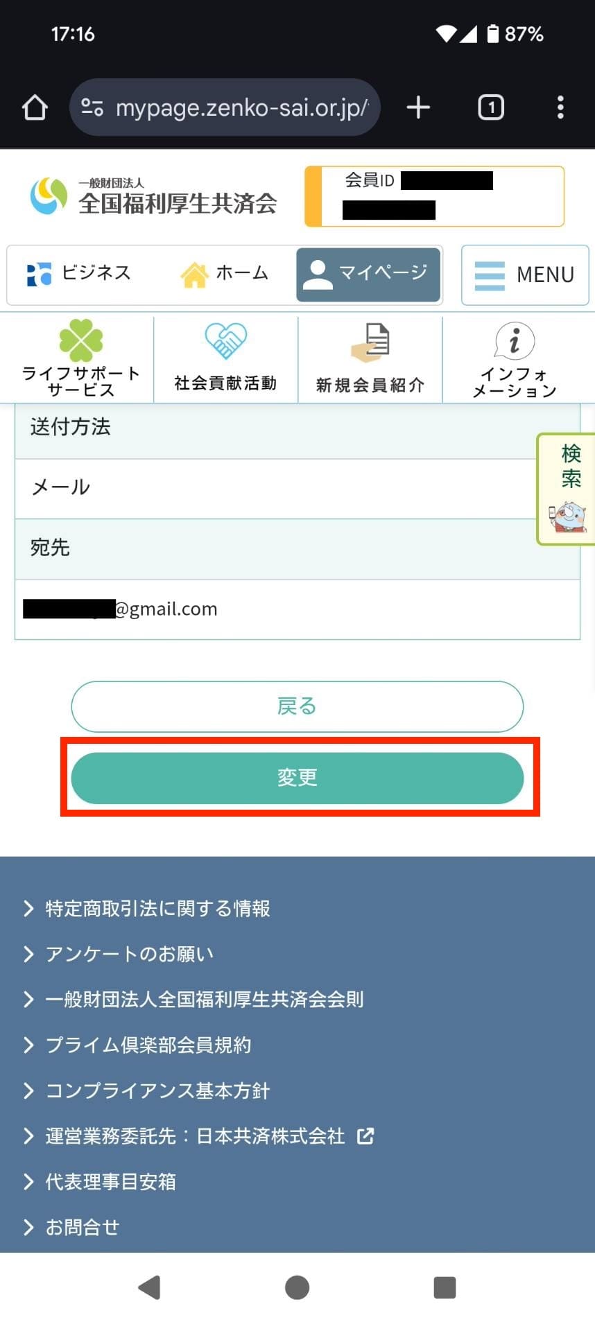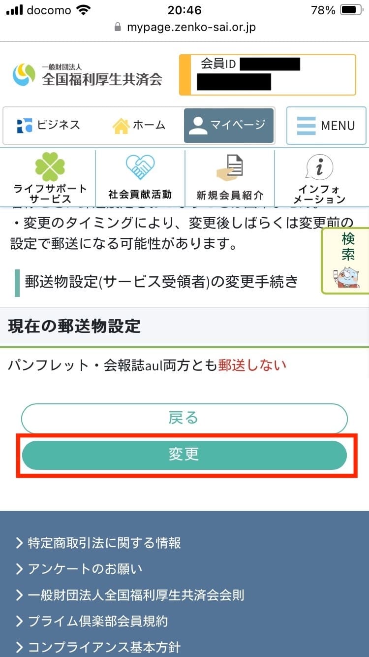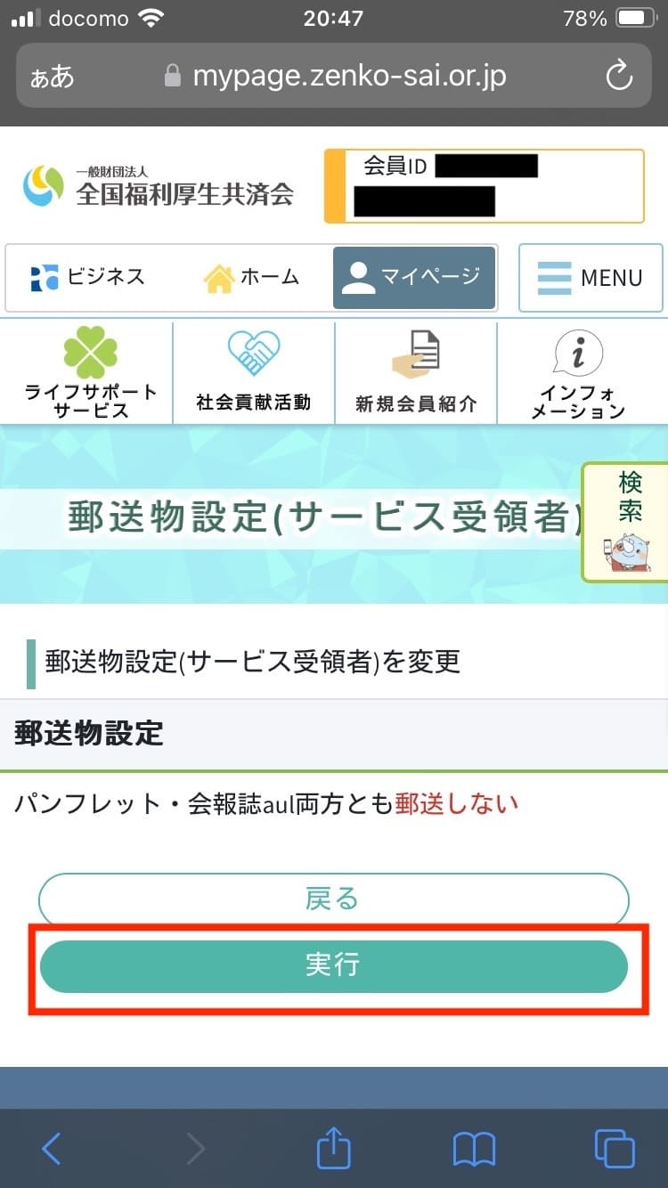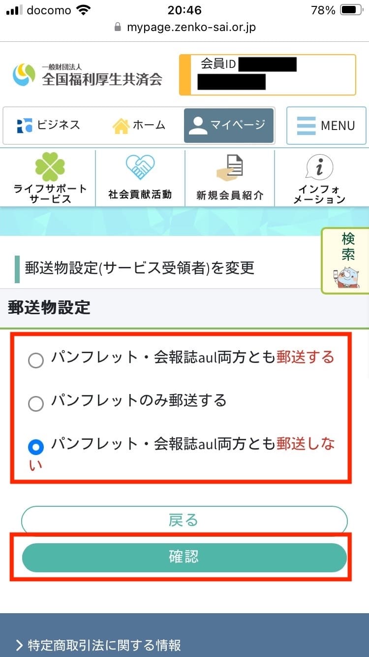 KS会員の分が不要な場合は、全厚済ログインページからP会員のみに届く設定に変更できます。