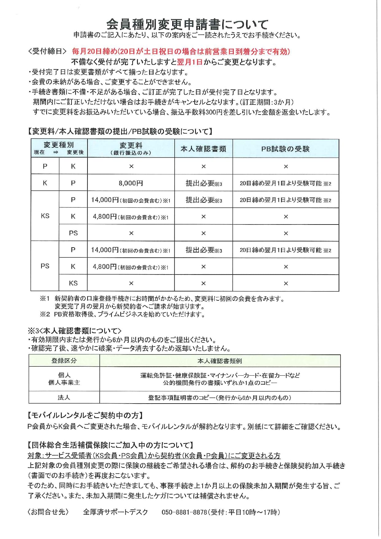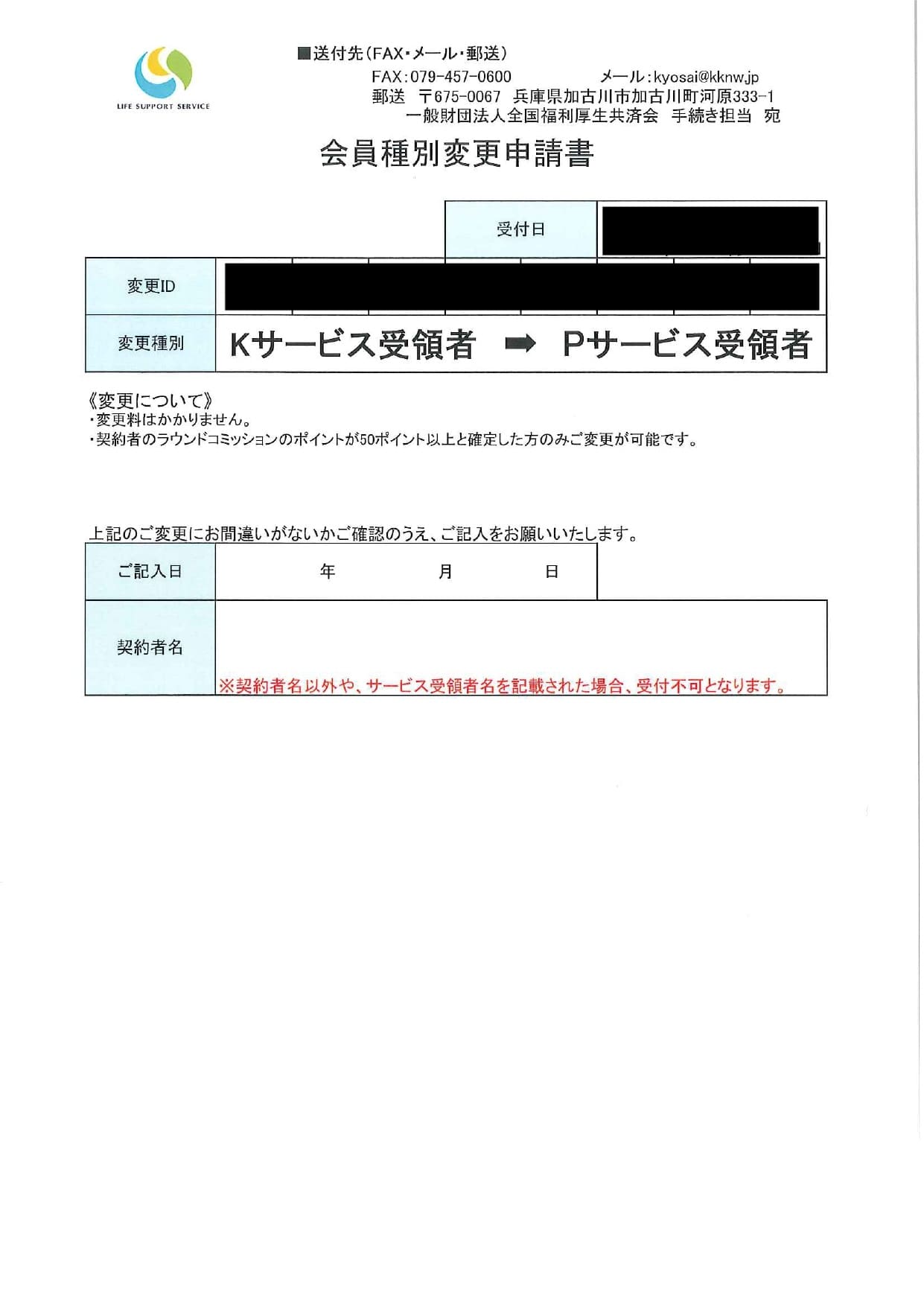 メールにて、「会員種別変更申請書について」「会員種別変更申請書」が送られます。「会員種別変更申請書」の「ご記入日」「契約者名」を記入して、メールで返送します。
