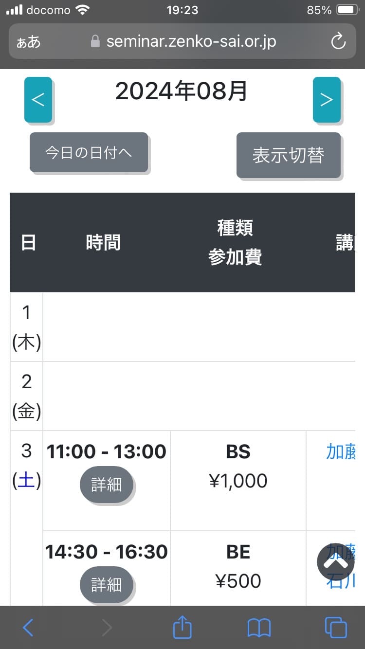 スマートフォンで「セミナー予約・チケット確認」ページが開けない方がまれにいます。(原因は不明)