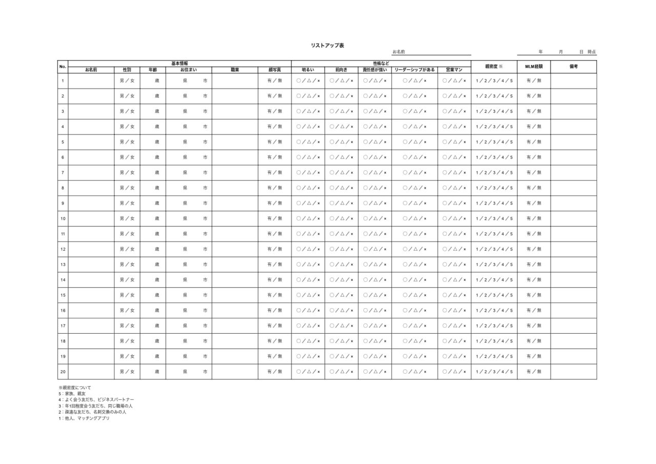 この人に伝えられそうか、登録しそうかで悩まずに、まずは楽しんで記入してみましょう。(LINEにいる友だちを上から順番に書いていくイメージです。)
