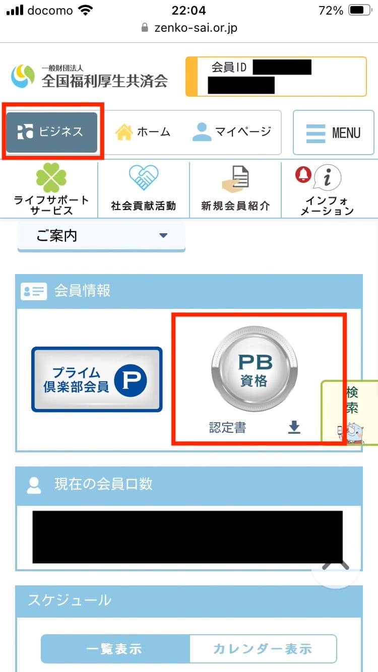 「ビジネス」の「会員情報」が以下の表示になっていることを確認する。