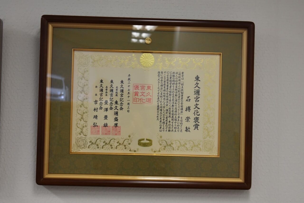 2015年には活動が評価され東久邇宮文化褒章をいただきました。